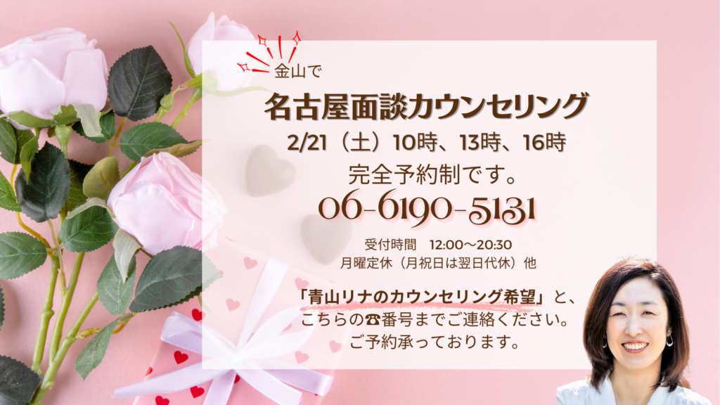 ご予約の際は、「青山リナのカウンセリング希望」とオペレーターにお伝えくださいね。