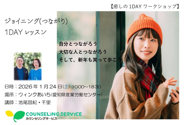 1月24日(土)10:00-18:30 【池尾昌紀・池尾千里:癒しの1DAYワークショップ 「つながり1DAYレッスン」】(カウンセリングサービス)@名古屋